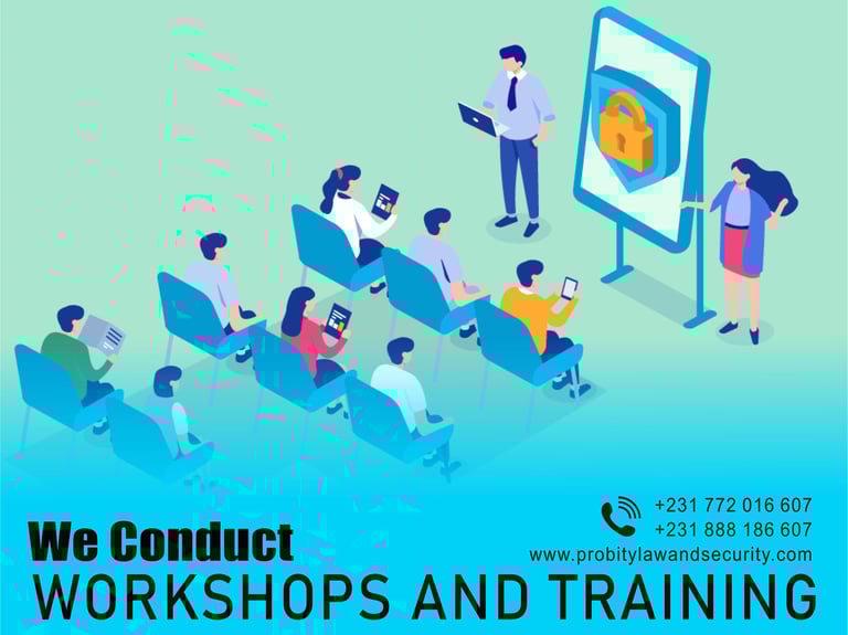 We specialize in offering workshops and training programs in the legal and security sectors for diverse groups. Our goal is to empower individuals and organizations to actively engage in the field of security and law. Through our comprehensive workshops, participants acquire practical knowledge and skills to navigate the complexities of the legal and security landscape. Our skilled trainers conduct interactive sessions, blending theoretical frameworks with hands-on exercises for a holistic learning experience.